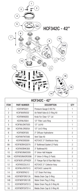 Hayward® HCF342C 42" HCF Series Commercial Bobbin Wound Fiberglass Sand Filter. The 42" HCF Series Commercial Bobbin Wound FG Sand Filter is designed to provide the ultimate in filtration performance and durability. Its larger size eliminates the need for multiple smaller filters, which means you’ll save valuable floor space, reduce installation and plumbing complexity, and simplify maintenance and backwashing. Constructed with heavy-duty filament-wound fiberglass and UV-protected resin, as well as corrosion-proof internals, this large-format HCF Series sand filter offers a powerful, streamlined filtration solution.